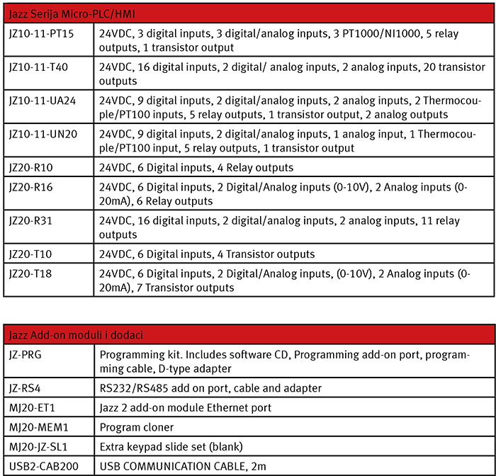 JAZZ-J, Disp2X16, 6 Digital Inputs including 3 HSC/Shaft-encoder, 2 Analog/Digital Inputs, 2 Analog Inputs, 6 Relay Outputs, USB |