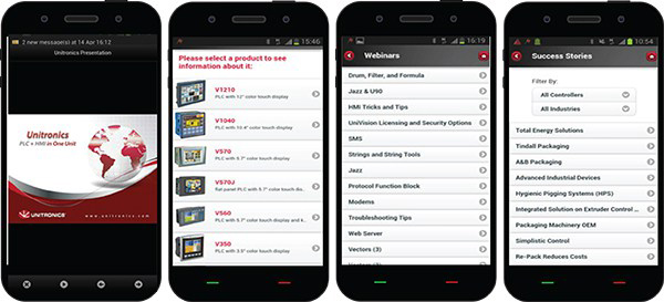 | Bez obzira da li koristite Android OS ili Apple iOS prezmite Unitronics aplikaciju koja sadrži kompletni pregled programa Unitronics uređaja, predstavlja korisne aplikacije/primene, prezentacije mogućnosti, webinare, kontakt informacije. Unitronics aplikacija dostupna je besplatno na Google Play Store i Apple App Store. |